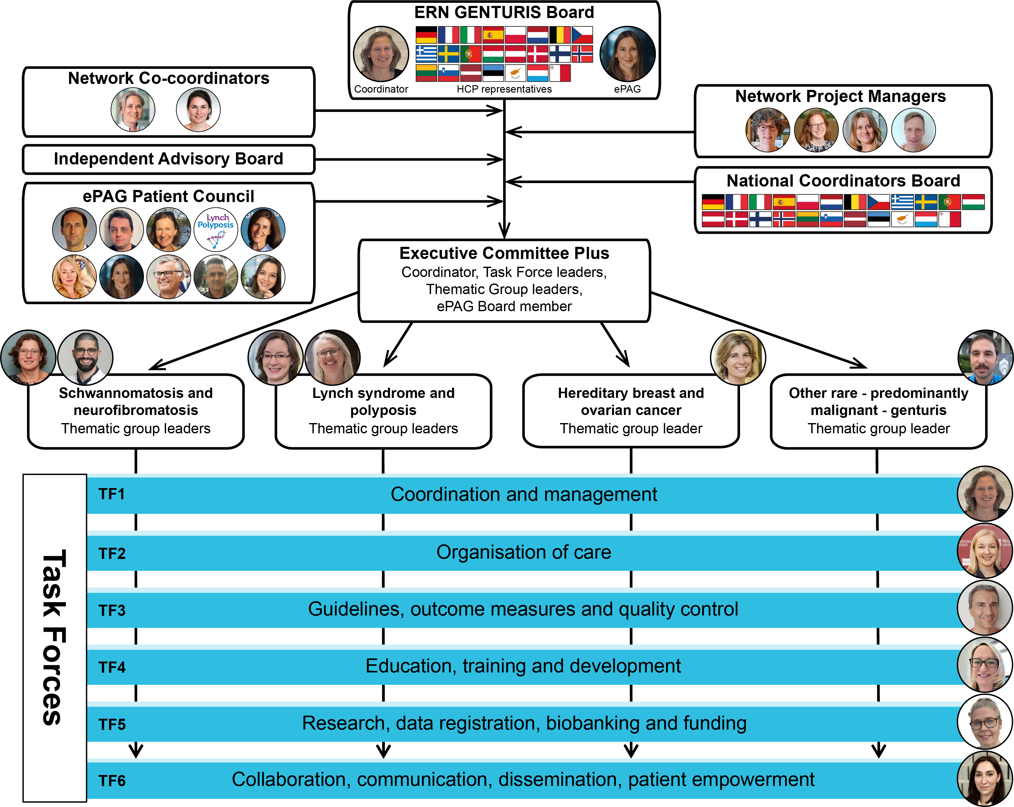 The ERN GENTURIS Board is the main governing body of the network and is composed of: